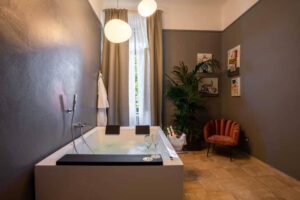 Questa suite dispone di balcone, ingresso privato e vasca idromassaggio.